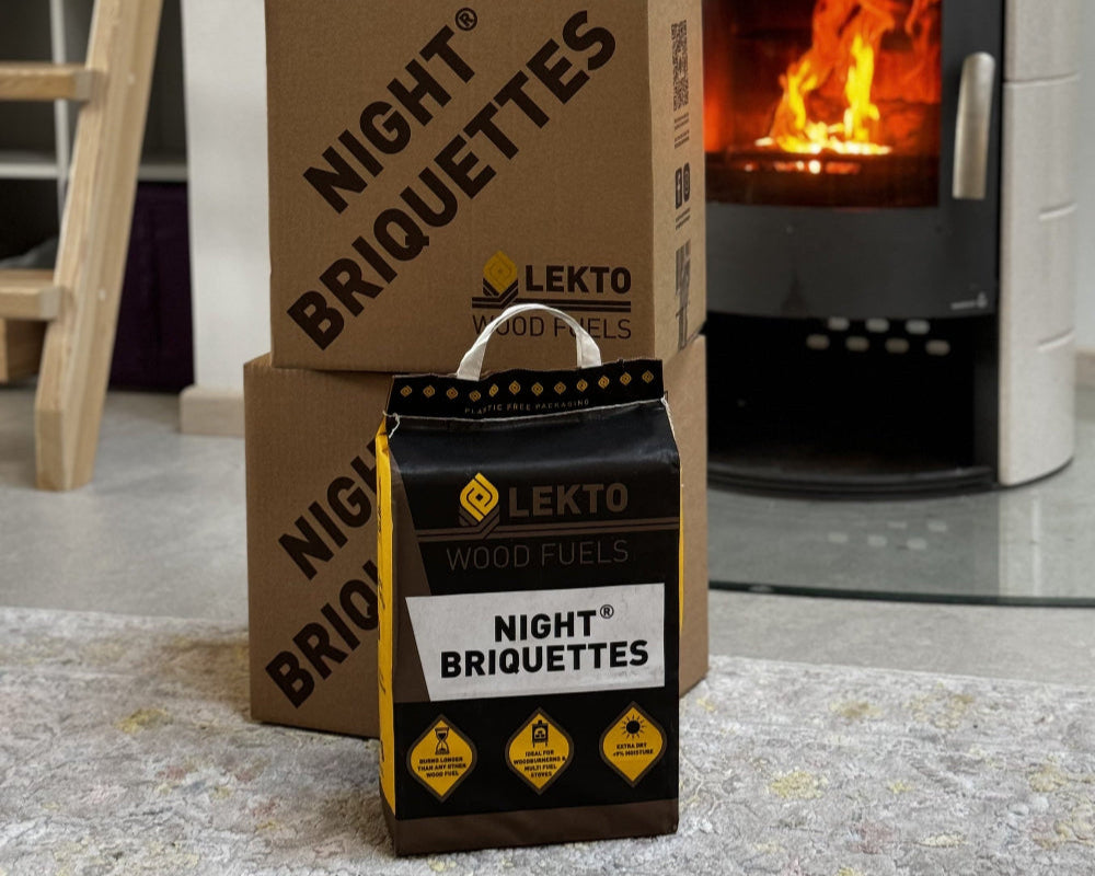 Lekto Night Briquettes come in lightweight 8kg bags with 8 easy-to-handle briquettes per bag—perfect for effortless carrying and daily use.Each briquette burns for up to 8 hours, delivering long-lasting, consistent heat. Ideal for overnight use and fewer top-ups, helping you save time and money while staying warm.